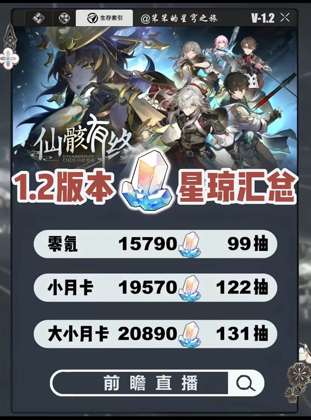 星穹铁道1.2版本能攒多少抽?相信各位小伙伴们都已经看完星穹铁道的1.2版本前瞻直播了,但是在目前版本当中已经有双c的小伙伴想要跳过1.2版本,具体不知道能获得多少星穹多少抽,今天小编就和大家分享一期星穹铁道1.2版本星穹汇总,感兴趣的小伙伴一起来和小编看看吧。